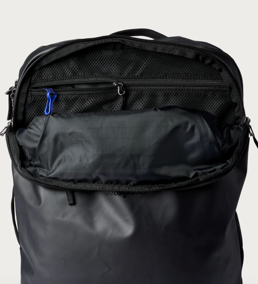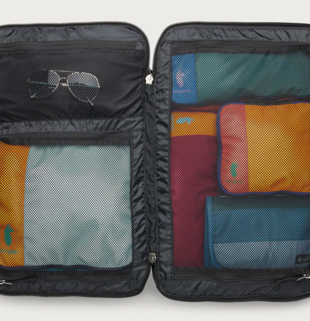 - Organizational compartments store power cords, power banks, and other daily essentials