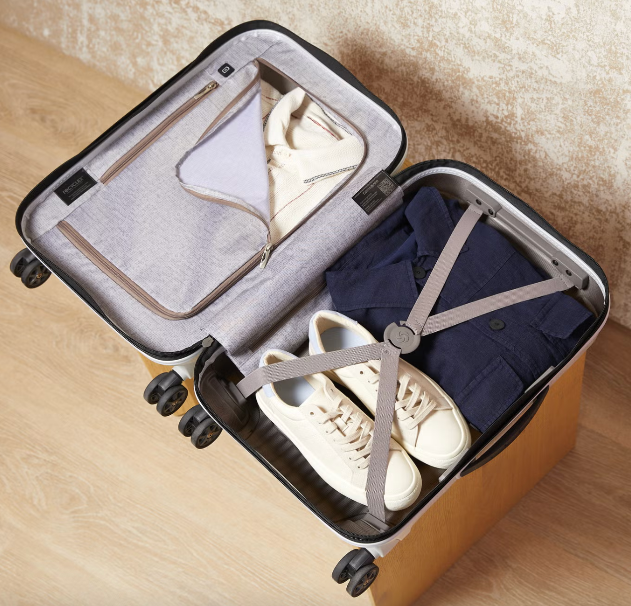 Samsonite-branded lining made from Recyclex®, a fabric engineered from 100% post-consumer recycled PET plastic bottles